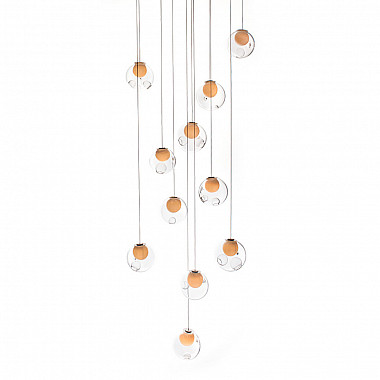 Люстра Boccia 28.11 Eleven Rectangle Один из вариантов представления 28 серии дизайнерских светильников от Boccia заключается в том, что подвешенные на одном основании плафоны имеют стропы различной длины и образуют в воздухе светящийся каскад. При этом каждый шар выполнен вручную и имеет неправильную сферическую форму. Модель Boccia 28.11 Rectangle состоит из нечетного количества элементов, закрепленных на прямоугольном основании и способных создать струящуюся композицию, слегка вытянутую в одном направлении. Благодаря регулируемой длине провода источники света находятся на разной высоте, обеспечивая равномерное освещение вдоль всего каскада. Романтичный «дождь» из свисающих вниз светильников понравится всем без исключения – и любителям строгих линий, и поклонникам креативного подхода к освещению. Он вполне может украсить собой обстановку в стиле лофт или хай-тек, привнеся в дизайн интерьера очаровательную нежность и легкий шарм. Своеобразная подвесная люстра является уникальной, поскольку каждый элемент изготовлен вручную по оригинальной технологии. Расплавленное стекло наносится на подготовленную сферу в произвольном порядке, поэтому расположение всех вкраплений строго индивидуально. Подобный метод гарантирует, что еще одного точно такого же экземпляра в природе просто не существует. Купить необычные люстры Boccia (Бочи) вы можете в интернет-магазине Lumarkt.ru