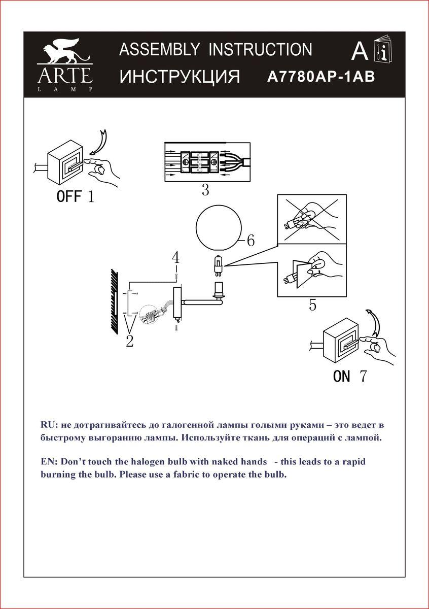 Бра Arte Lamp Albus A7780AP-1AB это отличная модель от зарекомендовавшего себя производителя Arte Lamp. – экономичное и безопасное решение для квартиры или частного дома, офисных учреждений и зданий. Осветительный прибор потребляет мало электроэнергии, светит ярко и не мерцает. Прекрасно подойдет в практически любой интерьер. Перед покупкой внимательно прочитайте: описание, фото, характеристики, отзывы покупателей и сертификаты. Модель относится к категории «Бра с 1 плафоном». Подойдет для прихожей и детской, но также отлично будет смотреться и в других комнатах или служебных помещениях. Можно устанавливать прибор как на обычном, так и на натяжном потолке. Подходит для комнат, как с высокими, так и с низкими потолками. В интернет-магазине «LUMARKT» можно купить по недорогой цене 2290 руб. с бесплатной доставкой по Москве.