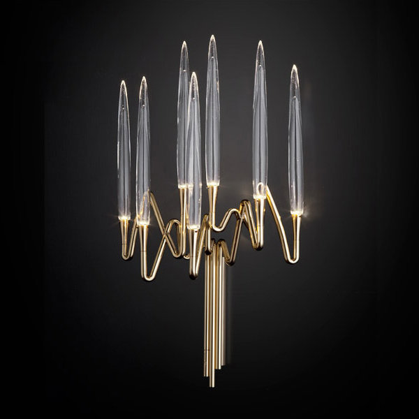 Бра Wall Sconce Gold by Il Pezzo Mancante Жизнь и работа во Флоренции, где даже камни мостовой обладают исторической ценностью, потому что по ним ступала нога великих мастеров эпохи Возрождения, заметно повлияла на творчество талантливой семейной пары – Cosimo Terzani и Barbara Bertocci. После учебы они какое-то время проработали дизайнерами в разных компаниях, но, познакомившись и обнаружив схожесть творческих идей, основали собственную студию. Вдохновленные работой ремесленников прошлого, они сделали акцент в своих проектах на использовании ручной работы и природных материалов. Каркас настенного бра выполнен из выкованной вручную латуни и покрыт позолотой, превращающей светильник в драгоценное украшение. Форма Wall Sconce Gold by Il Pezzo Mancante напоминает старинные канделябры, когда-то повсеместно используемые для освещения комнат и залов. Для полной аутентичности был использован оригинальный способ подключения светодиодов. Тонкие вытянутые кристаллы из выдувного стекла напоминают свечи. Впечатление усиливается от того, что источники света расположены на концах плафонов и полностью имитируют живое пламя. Изысканные светильники подчеркнут аристократизм и элегантность интерьера гостиной, кабинета, спальни, ресторана. Они обеспечат уютное освещение приватных зон и создадут в них комфортную атмосферу. Приобрести стильные дизайнерские бра вы можете в салоне элитных светильников Lumarkt.ru