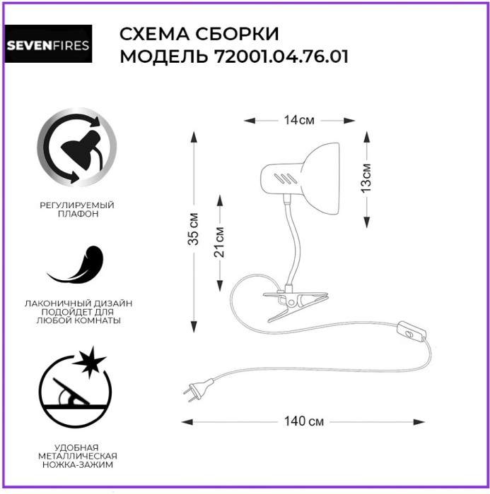 Интерьерная настольная лампа Eir 72001.04.76.01 это замечательная модель от зарекомендовавшего себя бренда Seven Fires. – экономичное и безопасное решение для квартиры или частного дома, офисных учреждений и зданий. Осветительный прибор потребляет мало электроэнергии, светит ярко и не мерцает. Идеально подойдет в практически любой интерьер. Перед покупкой досконально прочитайте: описание, фото, характеристики, отзывы покупателей и сертификаты. Модель относится к категории «Декоративные настольные лампы». Подойдет для зала и детской, но также отлично будет смотреться и в других комнатах или служебных помещениях. Можно монтировать осветительный прибор как на обычном, так и на натяжном потолке. Подходит для комнат, как с высокими, так и с низкими потолками. В интернет-магазине «LUMARKT» продается по недорогой цене 950 руб. с бесплатной доставкой по Москве.