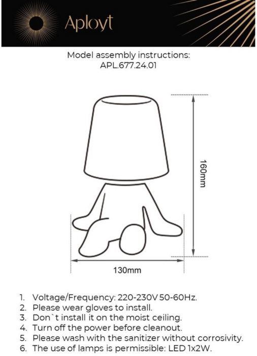 Интерьерная настольная лампа Olka APL.677.24.01 – отличная модель от знаменитого бренда Aployt. – экономичное и безопасное решение для квартиры или частного дома, офисных учреждений и зданий. Светильник потребляет мало электроэнергии, светит ярко и не мерцает. Идеально впишется в практически любой интерьер. Перед покупкой досконально прочитайте: описание, фото, характеристики, отзывы покупателей и сертификаты. Модель относится к категории «Декоративные настольные лампы». Подойдет для ванной и коридора, но также отлично будет смотреться и в других комнатах или служебных помещениях. Можно крепить прибор освещения как на обычном, так и на натяжном потолке. Подходит для комнат, как с высокими, так и с низкими потолками. В интернет-магазине «LUMARKT» можно купить по недорогой цене 1950 руб. с бесплатной доставкой по Москве.