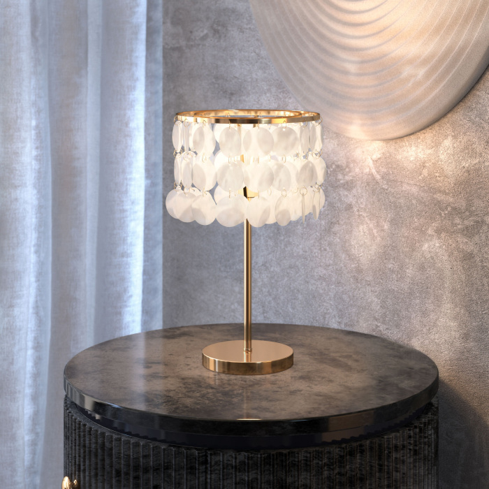 Интерьерная настольная лампа Sandra 208101 латунь/перламутр это великолепная модель от зарекомендовавшего себя бренда Eurosvet. – экономичное и безопасное решение для квартиры или частного дома, офисных учреждений и зданий. Прибор освещения потребляет мало электроэнергии, светит ярко и не мерцает. Идеально подойдет в практически любой интерьер. Перед покупкой внимательно прочитайте: описание, фото, характеристики, отзывы покупателей и сертификаты. Модель относится к категории «Декоративные настольные лампы». Подойдет для прихожей и спальни, но также отлично будет смотреться и в других комнатах или служебных помещениях. Можно крепить светильник как на обычном, так и на натяжном потолке. Подходит для комнат, как с высокими, так и с низкими потолками. В интернет-магазине «LUMARKT» продается по недорогой цене 9310 руб. с бесплатной доставкой по Москве.