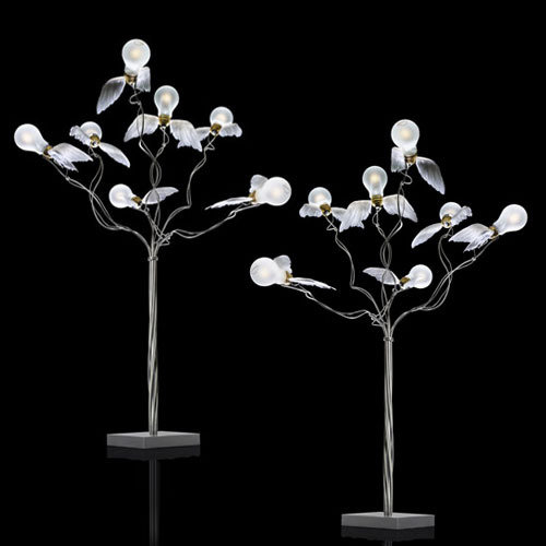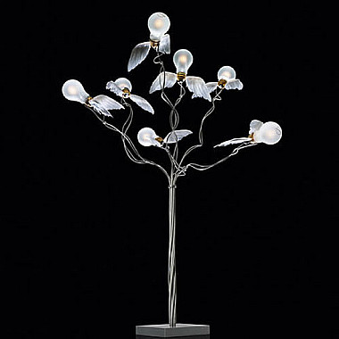 Лампа настольная Birdie's Busch by Ingo MaurerОх уж эти крылатые дизайнерские светильники Ingo Maurer. Они могут парить под потолком, а могут вспорхнуть со стола, как испуганные птенцы. Отличная идея прикрепить гусиные перья вокруг низковольтных галогенных лампочек превратила обычный предмет обстановки в настольную лампу Birdie's Busch. Металлический каркас из гибких креплений позволяет каждую лампочку-птичку направить в нужную сторону. Мощность источников света невелика, они входят в комплект при продаже изделия. Но декоративная составляющая светильника влияет на весь интерьер. Украсить такой лампой можно кабинет, гостиную, гостиничный холл и даже детскую. Приобрести необычные настольные лампы от I. Maurer вы можете в интернет-магазине Lumarkt.ru