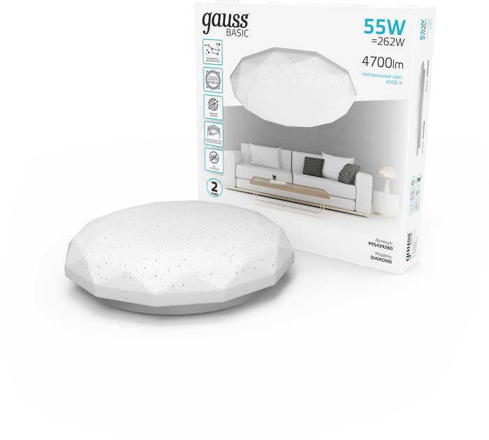 Настенно-потолочный светильник Basic Space Diamond 995439260 – отличная модель от надежного производителя Gauss. – экономичное и безопасное решение для квартиры или частного дома, офисных учреждений и зданий. Прибор освещения потребляет мало электроэнергии, светит ярко и не мерцает. Прекрасно подойдет в практически любой интерьер. Перед покупкой внимательно прочитайте: описание, фото, характеристики, отзывы покупателей и сертификаты. Модель относится к категории «Настенно-потолочные светильники». Подойдет для зала и кухни, но также отлично будет смотреться и в других комнатах или служебных помещениях. Можно крепить прибор освещения как на обычном, так и на натяжном потолке. Подходит для помещений, как с высокими, так и с низкими потолками. В интернет-магазине «LUMARKT» продается по низкой цене 1389 руб. с бесплатной доставкой по Москве.