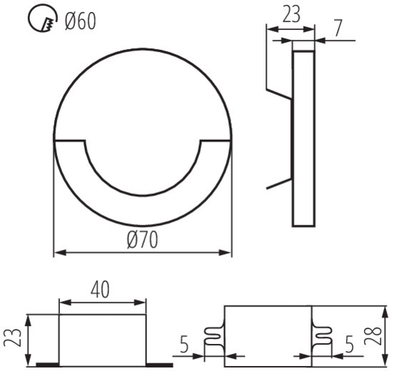 Подсветка для лестниц и ступеней SOLA 23804 – элегантная модель от надежного бренда Kanlux. – экономичное и безопасное решение для квартиры или частного дома, офисных учреждений и зданий. Светильник потребляет мало электроэнергии, светит ярко и не мерцает. Идеально впишется в практически любой интерьер. Перед покупкой внимательно прочитайте: описание, фото, характеристики, отзывы покупателей и сертификаты. Модель относится к категории «Точечные светильники». Подойдет для гостиной и коридора, но также отлично будет смотреться и в других комнатах или служебных помещениях. Можно устанавливать прибор как на обычном, так и на натяжном потолке. Подходит для помещений, как с высокими, так и с низкими потолками. В интернет-магазине «LUMARKT» продается по низкой цене 2802 руб. с бесплатной доставкой по Москве.