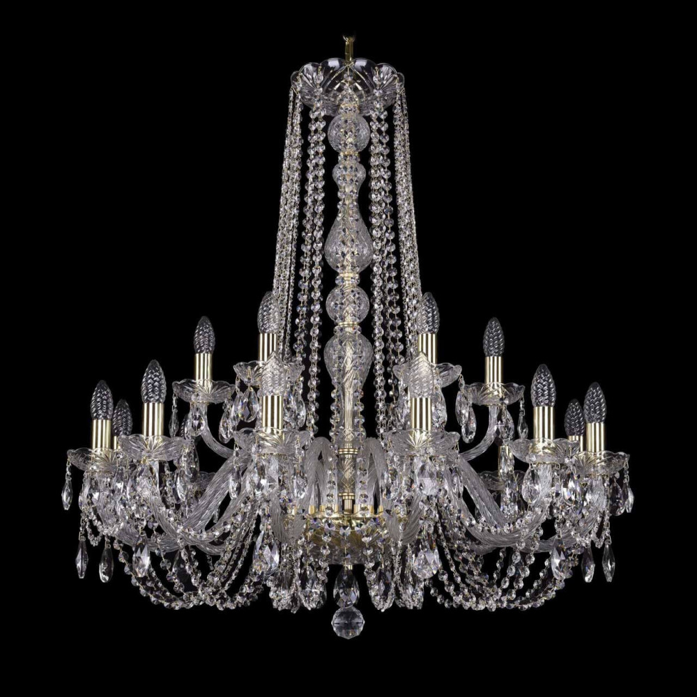 Подвесная люстра 1402 1402/12+6/300/h-90 G это замечательная модель от знаменитого производителя Bohemia. – экономичное и безопасное решение для квартиры или частного дома, офисных учреждений и зданий. Светильник потребляет мало электроэнергии, светит ярко и не мерцает. Прекрасно подойдет в практически любой интерьер. Перед покупкой внимательно изучите: описание, фото, характеристики, отзывы покупателей и сертификаты. Модель относится к категории «Подвесные люстры». Подойдет для зала и коридора, но также отлично будет смотреться и в других комнатах или служебных помещениях. Можно монтировать светильник как на простом, так и на натяжном потолке. Подходит для помещений, как с высокими, так и с низкими потолками. В интернет-магазине «LUMARKT» продается по низкой цене 97374 руб. с бесплатной доставкой по Москве.