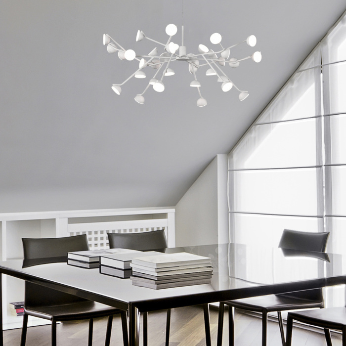 Подвесная люстра Adn 8651 – хорош ая модель от надежного производителя Mantra. – экономичное и безопасное решение для квартиры или частного дома, офисных учреждений и зданий. Осветительный прибор потребляет мало электроэнергии, светит ярко и не мерцает. Хорошо впишется в практически любой интерьер. Перед покупкой внимательно прочитайте: описание, фото, характеристики, отзывы покупателей и сертификаты. Модель относится к категории «Подвесные люстры». Подойдет для зала и детской, но также отлично будет смотреться и в других комнатах или служебных помещениях. Можно крепить прибор освещения как на простом, так и на натяжном потолке. Подходит для комнат, как с высокими, так и с низкими потолками. В интернет-магазине «LUMARKT» продается по недорогой цене 124634 руб. с бесплатной доставкой по Москве.