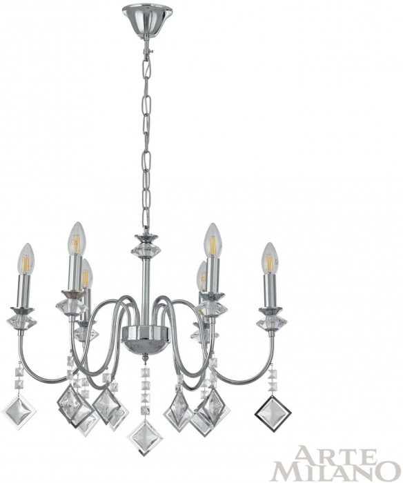 Подвесная люстра AM342101 342101/6 CR – элегантная модель от надежного производителя Arte Milano. – экономичное и безопасное решение для квартиры или частного дома, офисных учреждений и зданий. Прибор освещения потребляет мало электроэнергии, светит ярко и не мерцает. Прекрасно подойдет в практически любой интерьер. Перед покупкой досконально прочитайте: описание, фото, характеристики, отзывы покупателей и сертификаты. Модель относится к категории «Подвесные люстры». Подойдет для гостиной и детской, но также отлично будет смотреться и в других комнатах или служебных помещениях. Можно устанавливать прибор как на простом, так и на натяжном потолке. Подходит для комнат, как с высокими, так и с низкими потолками. В интернет-магазине «LUMARKT» можно купить по низкой цене 11516 руб. с бесплатной доставкой по Москве.