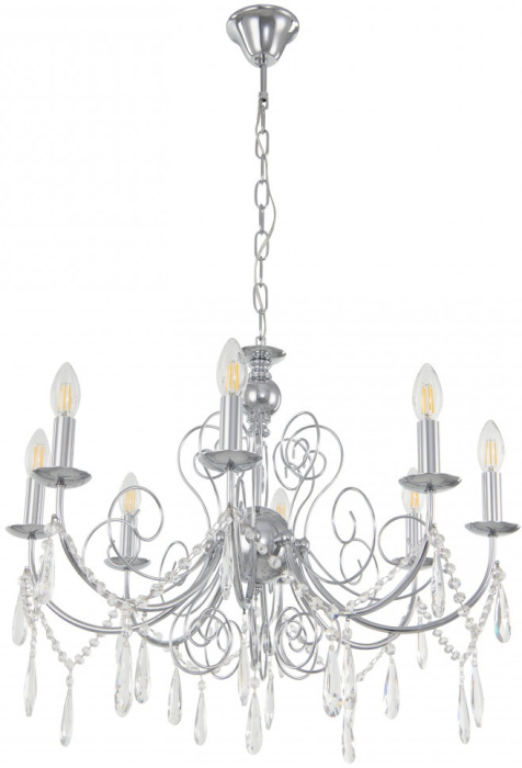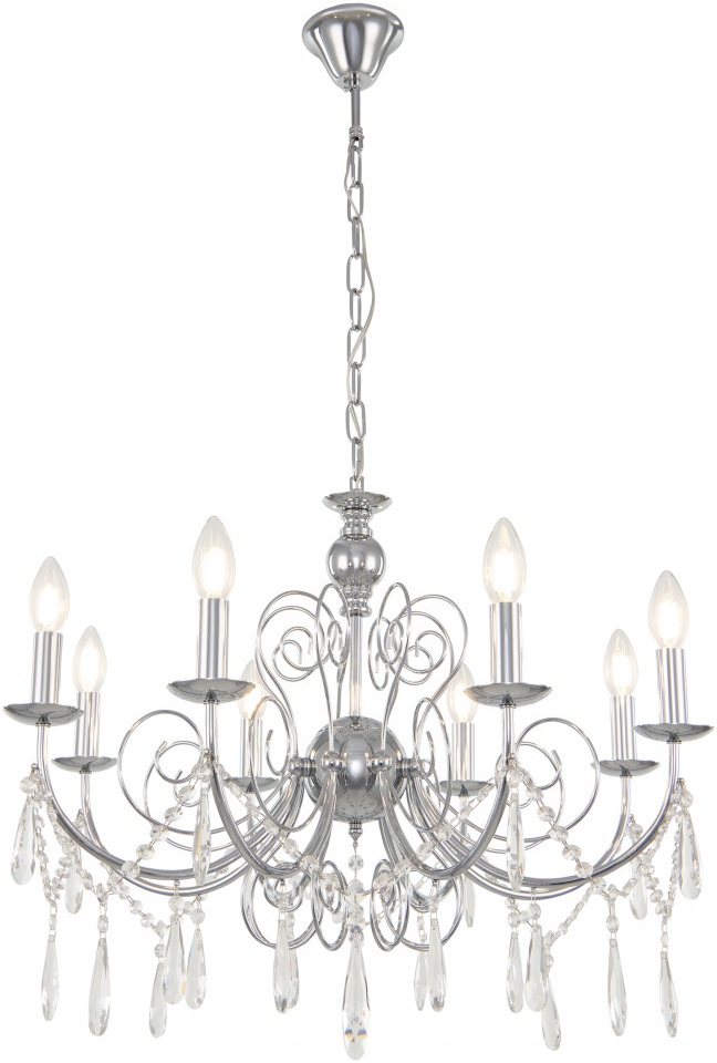 Подвесная люстра AM345620 345620/8 CR это отличная модель от зарекомендовавшего себя производителя Arte Milano. – экономичное и безопасное решение для квартиры или частного дома, офисных учреждений и зданий. Прибор освещения потребляет мало электроэнергии, светит ярко и не мерцает. Идеально подойдет в практически любой интерьер. Перед покупкой досконально прочитайте: описание, фото, характеристики, отзывы покупателей и сертификаты. Модель относится к категории «Подвесные люстры». Подойдет для зала и детской, но также отлично будет смотреться и в других комнатах или служебных помещениях. Можно устанавливать осветительный прибор как на обычном, так и на натяжном потолке. Подходит для помещений, как с высокими, так и с низкими потолками. В интернет-магазине «LUMARKT» продается по низкой цене 12026 руб. с бесплатной доставкой по Москве.