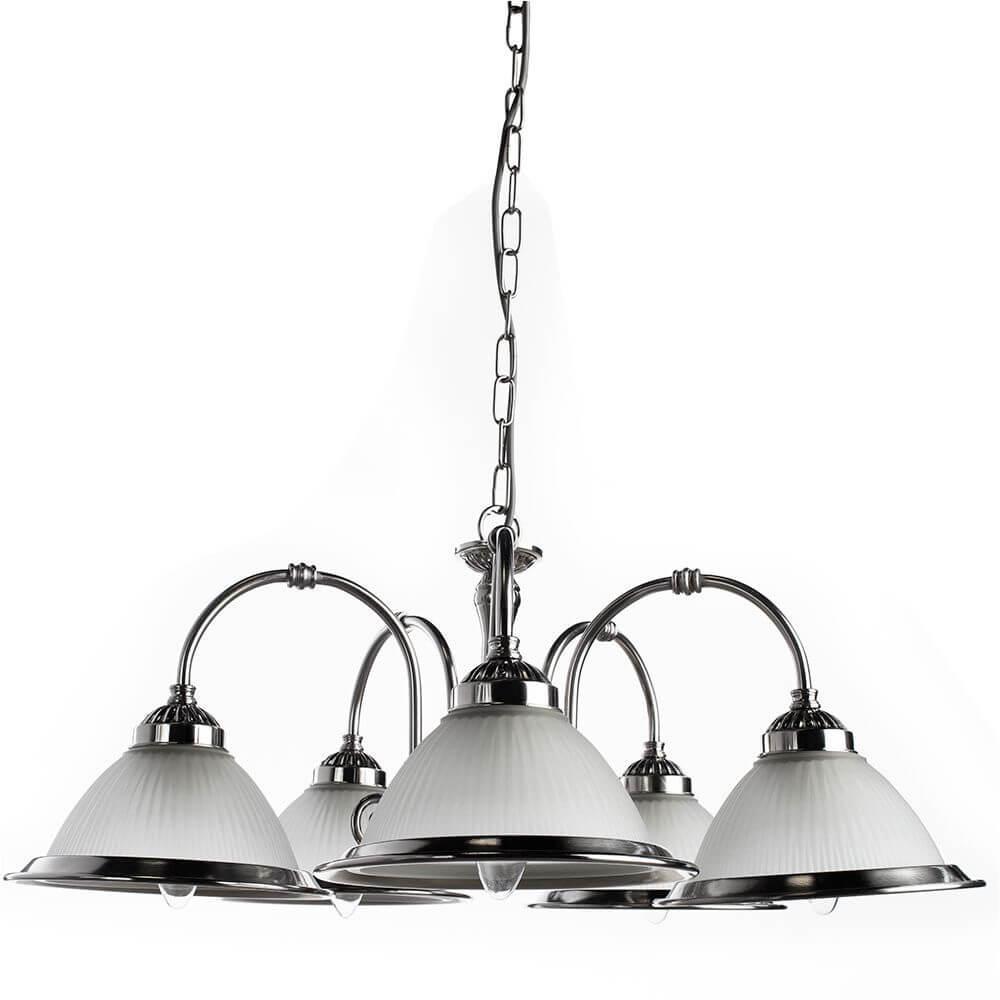 Подвесная люстра Arte Lamp American Diner A9366LM-5SS это современная модель от знаменитого бренда Arte Lamp. – экономичное и безопасное решение для квартиры или частного дома, офисных учреждений и зданий. Осветительный прибор потребляет мало электроэнергии, светит ярко и не мерцает. Идеально подойдет в практически любой интерьер. Перед покупкой досконально изучите: описание, фото, характеристики, отзывы покупателей и сертификаты. Модель относится к категории «Подвесные люстры». Подойдет для зала и спальни, но также отлично будет смотреться и в других комнатах или служебных помещениях. Можно крепить прибор освещения как на обычном, так и на натяжном потолке. Подходит для комнат, как с высокими, так и с низкими потолками. В интернет-магазине «LUMARKT» можно купить по недорогой цене 12950 руб. с бесплатной доставкой по Москве.