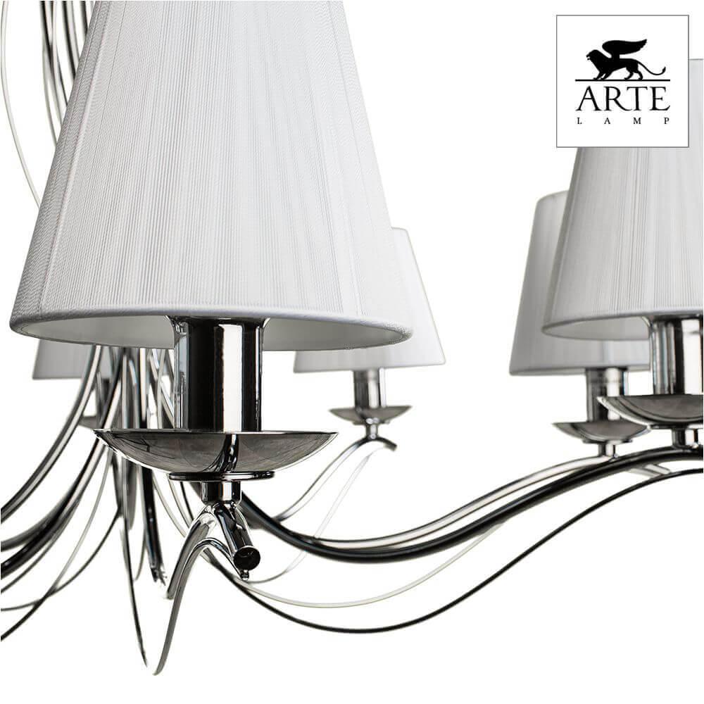 Подвесная люстра Arte Lamp Domain A9521LM-8CC – популярная модель от надежного производителя Arte Lamp. – экономичное и безопасное решение для квартиры или частного дома, офисных учреждений и зданий. Осветительный прибор потребляет мало электроэнергии, светит ярко и не мерцает. Идеально подойдет в практически любой интерьер. Перед покупкой внимательно прочитайте: описание, фото, характеристики, отзывы покупателей и сертификаты. Модель относится к категории «Подвесные люстры». Подойдет для гостиной и коридора, но также отлично будет смотреться и в других комнатах или служебных помещениях. Можно монтировать прибор как на простом, так и на натяжном потолке. Подходит для помещений, как с высокими, так и с низкими потолками. В интернет-магазине «LUMARKT» продается по недорогой цене 28950 руб. с бесплатной доставкой по Москве.