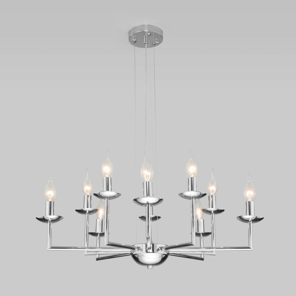 Подвесная люстра Cariso 60150/10 хром – современная модель от надежного производителя Eurosvet. – экономичное и безопасное решение для квартиры или частного дома, офисных учреждений и зданий. Прибор освещения потребляет мало электроэнергии, светит ярко и не мерцает. Идеально впишется в практически любой интерьер. Перед покупкой внимательно изучите: описание, фото, характеристики, отзывы покупателей и сертификаты. Модель относится к категории «Подвесные люстры». Подойдет для зала и спальни, но также отлично будет смотреться и в других комнатах или служебных помещениях. Можно крепить светильник как на простом, так и на натяжном потолке. Подходит для помещений, как с высокими, так и с низкими потолками. В интернет-магазине «LUMARKT» можно купить по низкой цене 4940 руб. с бесплатной доставкой по Москве.