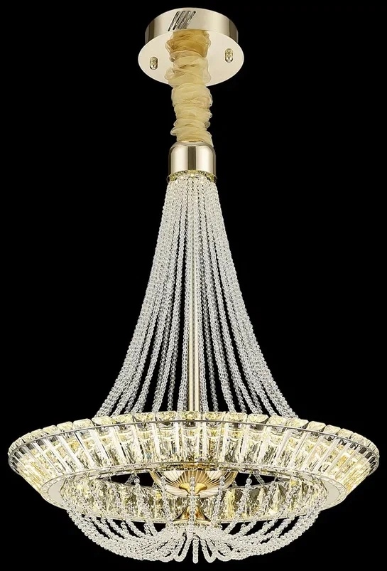 Подвесная люстра Daria WE103.60.303 это хорош ая модель от знаменитого бренда Wertmark. – экономичное и безопасное решение для квартиры или частного дома, офисных учреждений и зданий. Осветительный прибор потребляет мало электроэнергии, светит ярко и не мерцает. Идеально подойдет в практически любой интерьер. Перед покупкой досконально изучите: описание, фото, характеристики, отзывы покупателей и сертификаты. Модель относится к категории «Подвесные люстры». Подойдет для ванной и кухни, но также отлично будет смотреться и в других комнатах или служебных помещениях. Можно устанавливать осветительный прибор как на простом, так и на натяжном потолке. Подходит для помещений, как с высокими, так и с низкими потолками. В интернет-магазине «LUMARKT» можно купить по недорогой цене 74961 руб. с бесплатной доставкой по Москве.