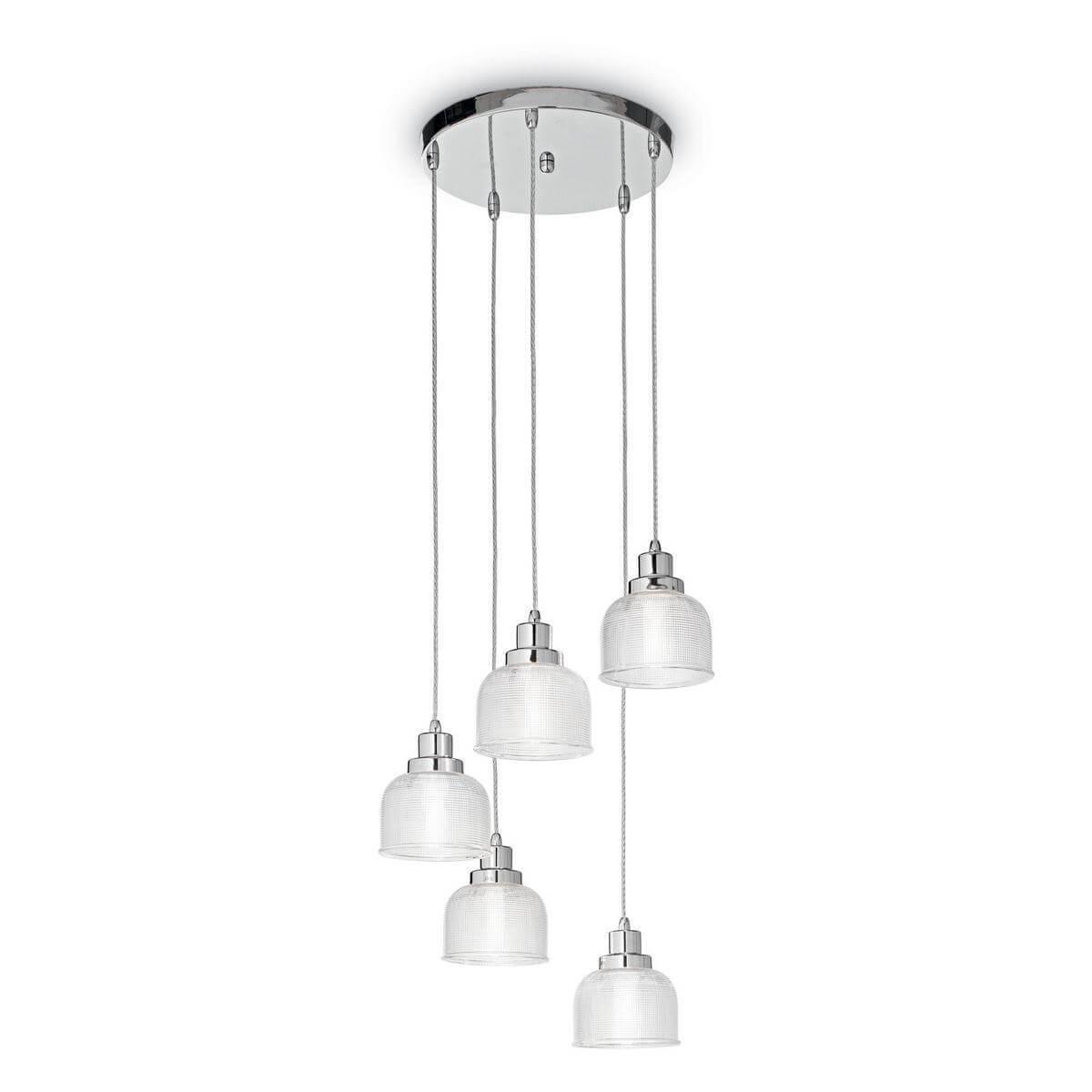 Подвесная люстра Ideal Lux Ruby SP5 Cromo 153100 это великолепная модель от зарекомендовавшего себя производителя Ideal Lux. – экономичное и безопасное решение для квартиры или частного дома, офисных учреждений и зданий. Прибор освещения потребляет мало электроэнергии, светит ярко и не мерцает. Хорошо впишется в практически любой интерьер. Перед покупкой внимательно прочитайте: описание, фото, характеристики, отзывы покупателей и сертификаты. Модель относится к категории «Подвесные люстры». Подойдет для прихожей и спальни, но также отлично будет смотреться и в других комнатах или служебных помещениях. Можно устанавливать прибор освещения как на обычном, так и на натяжном потолке. Подходит для помещений, как с высокими, так и с низкими потолками. В интернет-магазине «LUMARKT» можно купить по недорогой цене 23890 руб. с бесплатной доставкой по Москве. Торопитесь сделать заказ!