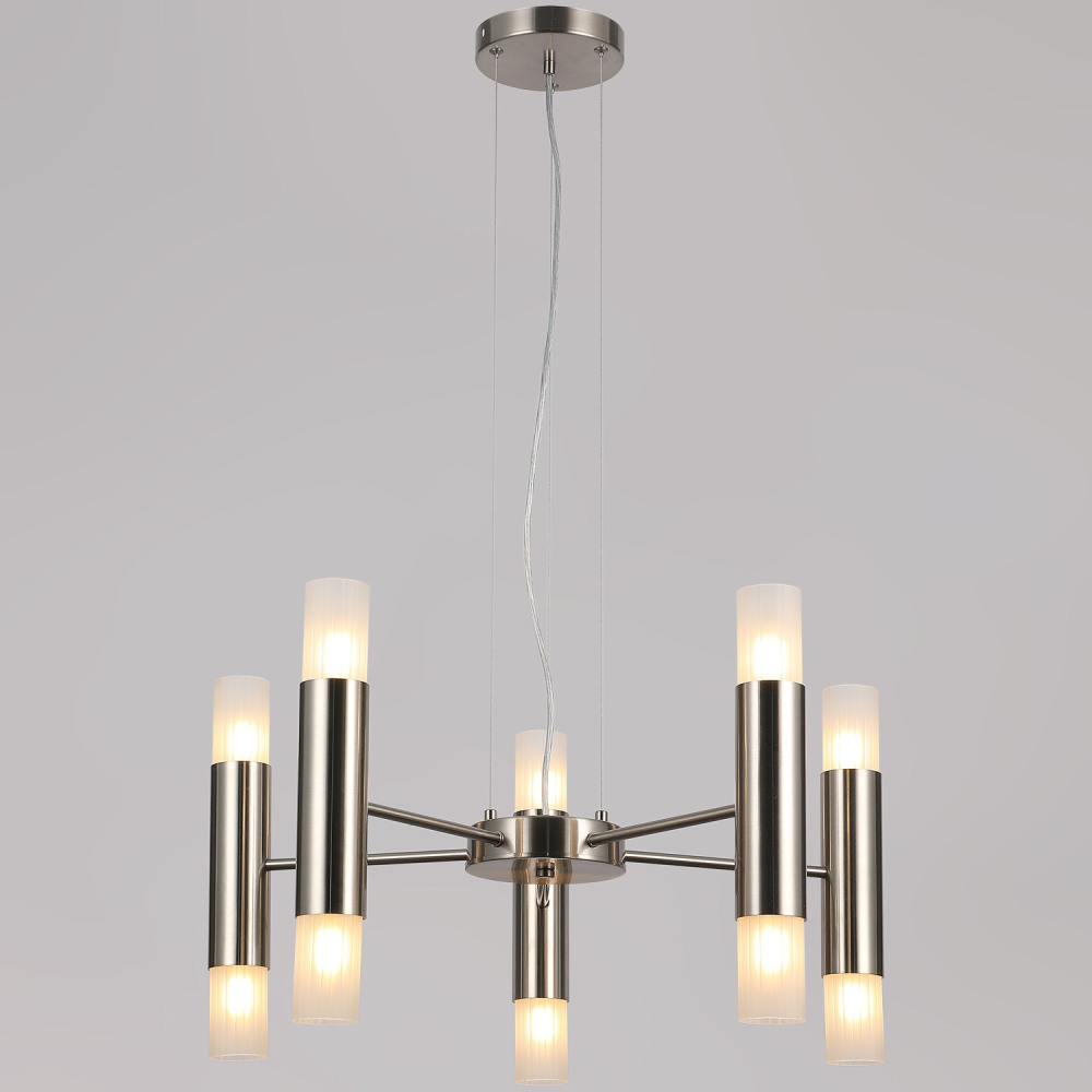 Подвесная люстра IL0314-10P-79 SN это хорош ая модель от надежного производителя ILLUMICO. – экономичное и безопасное решение для квартиры или частного дома, офисных учреждений и зданий. Светильник потребляет мало электроэнергии, светит ярко и не мерцает. Идеально подойдет в практически любой интерьер. Перед покупкой внимательно прочитайте: описание, фото, характеристики, отзывы покупателей и сертификаты. Модель относится к категории «Подвесные люстры». Подойдет для ванной и коридора, но также отлично будет смотреться и в других комнатах или служебных помещениях. Можно крепить осветительный прибор как на простом, так и на натяжном потолке. Подходит для помещений, как с высокими, так и с низкими потолками. В интернет-магазине «LUMARKT» продается по недорогой цене 21220 руб. с бесплатной доставкой по Москве.