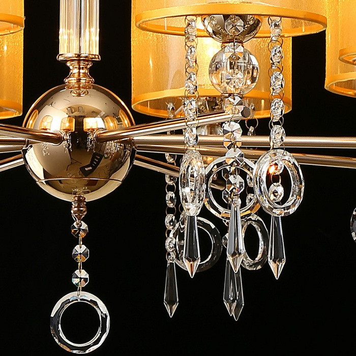 Подвесная люстра IL6219-8P-27 GD это отличная модель от надежного производителя ILLUMICO. – экономичное и безопасное решение для квартиры или частного дома, офисных учреждений и зданий. Прибор освещения потребляет мало электроэнергии, светит ярко и не мерцает. Хорошо впишется в практически любой интерьер. Перед покупкой досконально изучите: описание, фото, характеристики, отзывы покупателей и сертификаты. Модель относится к категории «Подвесные люстры». Подойдет для гостиной и детской, но также отлично будет смотреться и в других комнатах или служебных помещениях. Можно крепить прибор как на обычном, так и на натяжном потолке. Подходит для помещений, как с высокими, так и с низкими потолками. В интернет-магазине «LUMARKT» можно купить по недорогой цене 8880 руб. с бесплатной доставкой по Москве.