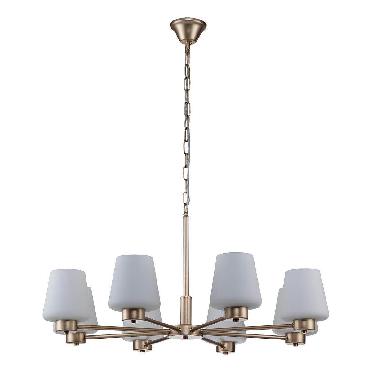 Подвесная люстра Indigo Tulip 13004/8P Gold V000002 – популярная модель от зарекомендовавшего себя производителя Indigo. – экономичное и безопасное решение для квартиры или частного дома, офисных учреждений и зданий. Осветительный прибор потребляет мало электроэнергии, светит ярко и не мерцает. Прекрасно подойдет в практически любой интерьер. Перед покупкой досконально прочитайте: описание, фото, характеристики, отзывы покупателей и сертификаты. Модель относится к категории «Подвесные люстры». Подойдет для гостиной и кухни, но также отлично будет смотреться и в других комнатах или служебных помещениях. Можно монтировать осветительный прибор как на простом, так и на натяжном потолке. Подходит для комнат, как с высокими, так и с низкими потолками. В интернет-магазине «LUMARKT» продается по недорогой цене 12710 руб. с бесплатной доставкой по Москве.