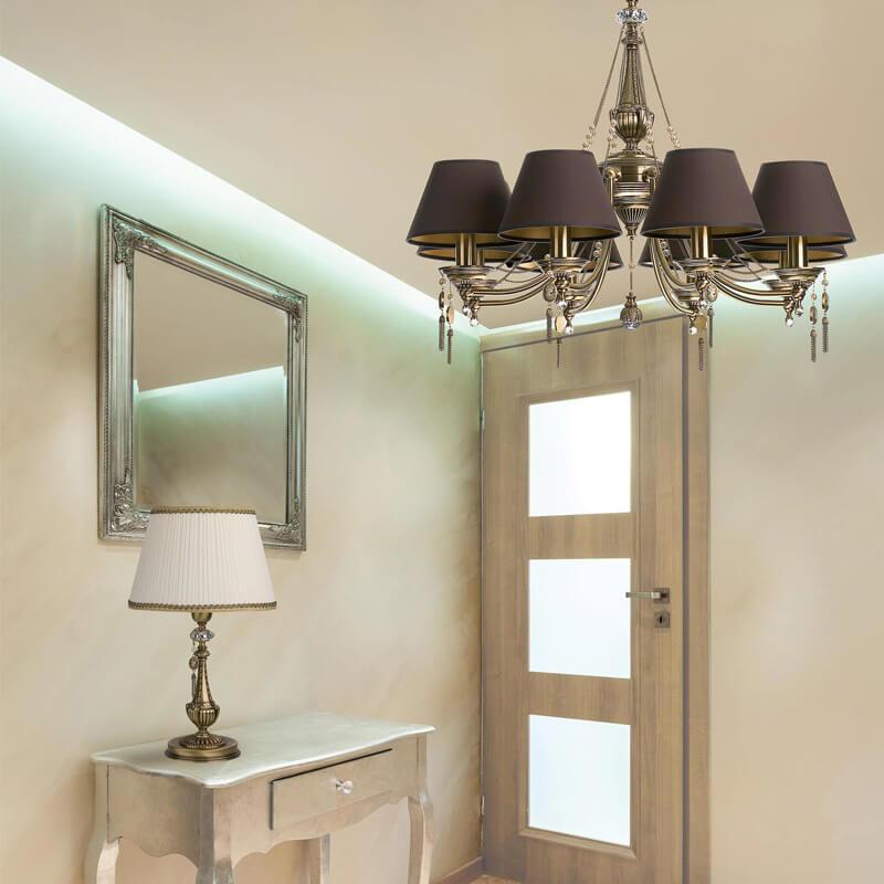 Подвесная люстра Kutek Portofino Abazur POR-ZW-8 (P/A) это популярная модель от известного бренда Kutek. – экономичное и безопасное решение для квартиры или частного дома, офисных учреждений и зданий. Прибор освещения потребляет мало электроэнергии, светит ярко и не мерцает. Хорошо впишется в практически любой интерьер. Перед покупкой досконально изучите: описание, фото, характеристики, отзывы покупателей и сертификаты. Модель относится к категории «Подвесные люстры». Подойдет для прихожей и детской, но также отлично будет смотреться и в других комнатах или служебных помещениях. Можно монтировать светильник как на обычном, так и на натяжном потолке. Подходит для комнат, как с высокими, так и с низкими потолками. В интернет-магазине «LUMARKT» продается по недорогой цене 109555 руб. с бесплатной доставкой по Москве.