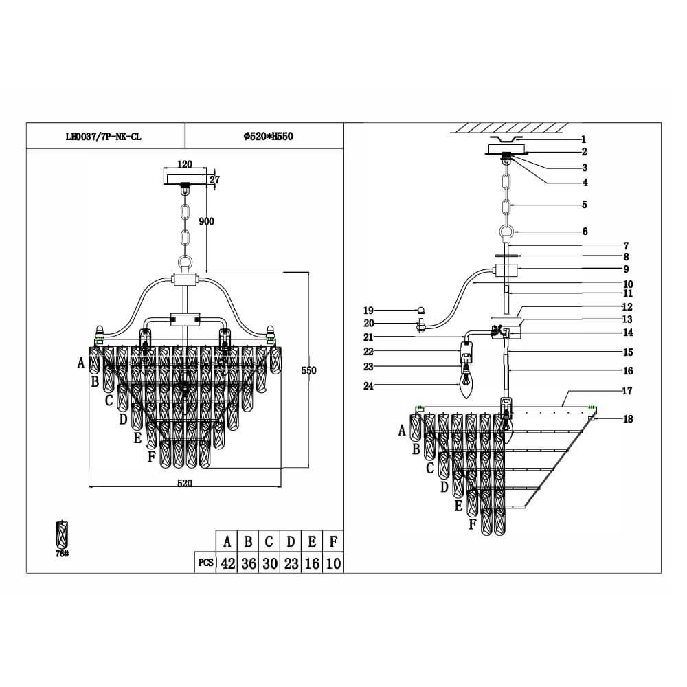 Подвесная люстра Lumien Hall Salvatore LH0037/7P-NK-CL – популярная модель от признанного во всем мире бренда Lumien Hall. – экономичное и безопасное решение для квартиры или частного дома, офисных учреждений и зданий. Осветительный прибор потребляет мало электроэнергии, светит ярко и не мерцает. Прекрасно подойдет в практически любой интерьер. Перед покупкой досконально изучите: описание, фото, характеристики, отзывы покупателей и сертификаты. Модель относится к категории «Подвесные люстры». Подойдет для зала и коридора, но также отлично будет смотреться и в других комнатах или служебных помещениях. Можно монтировать прибор освещения как на обычном, так и на натяжном потолке. Подходит для комнат, как с высокими, так и с низкими потолками. В интернет-магазине «LUMARKT» продается по недорогой цене 39060 руб. с бесплатной доставкой по Москве. Торопитесь сделать заказ!