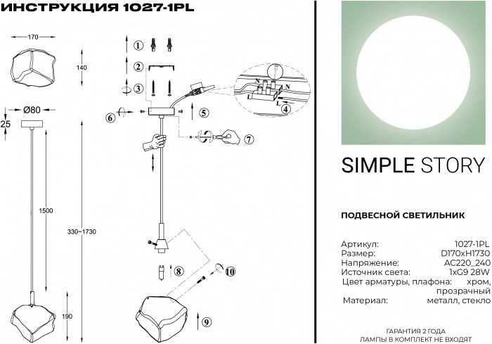 Подвесной светильник 1027 1027-1PL – замечательная модель от известного производителя Simple Story. – экономичное и безопасное решение для квартиры или частного дома, офисных учреждений и зданий. Осветительный прибор потребляет мало электроэнергии, светит ярко и не мерцает. Прекрасно подойдет в практически любой интерьер. Перед покупкой досконально прочитайте: описание, фото, характеристики, отзывы покупателей и сертификаты. Модель относится к категории «Подвесные светильники». Подойдет для прихожей и спальни, но также отлично будет смотреться и в других комнатах или служебных помещениях. Можно крепить прибор освещения как на простом, так и на натяжном потолке. Подходит для помещений, как с высокими, так и с низкими потолками. В интернет-магазине «LUMARKT» можно купить по низкой цене 8580 руб. с бесплатной доставкой по Москве.