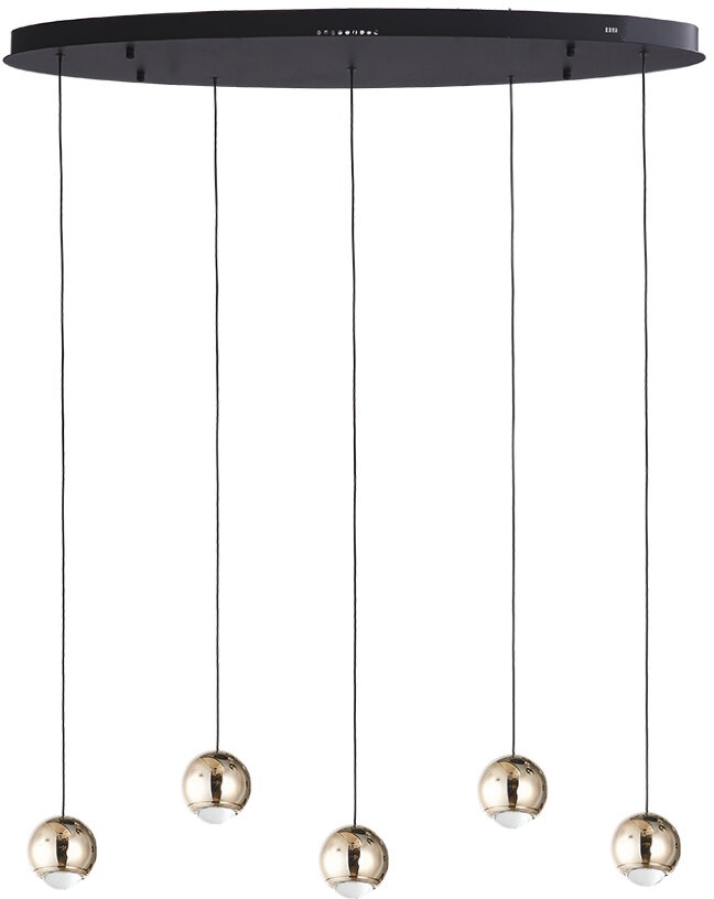 Подвесной светильник Danay LH8027/5P-BK-SGD – элегантная модель от известного производителя Lumien Hall. – экономичное и безопасное решение для квартиры или частного дома, офисных учреждений и зданий. Осветительный прибор потребляет мало электроэнергии, светит ярко и не мерцает. Прекрасно подойдет в практически любой интерьер. Перед покупкой досконально изучите: описание, фото, характеристики, отзывы покупателей и сертификаты. Модель относится к категории «Подвесные светильники». Подойдет для гостиной и кухни, но также отлично будет смотреться и в других комнатах или служебных помещениях. Можно монтировать осветительный прибор как на обычном, так и на натяжном потолке. Подходит для комнат, как с высокими, так и с низкими потолками. В интернет-магазине «LUMARKT» можно купить по низкой цене 17090 руб. с бесплатной доставкой по Москве.