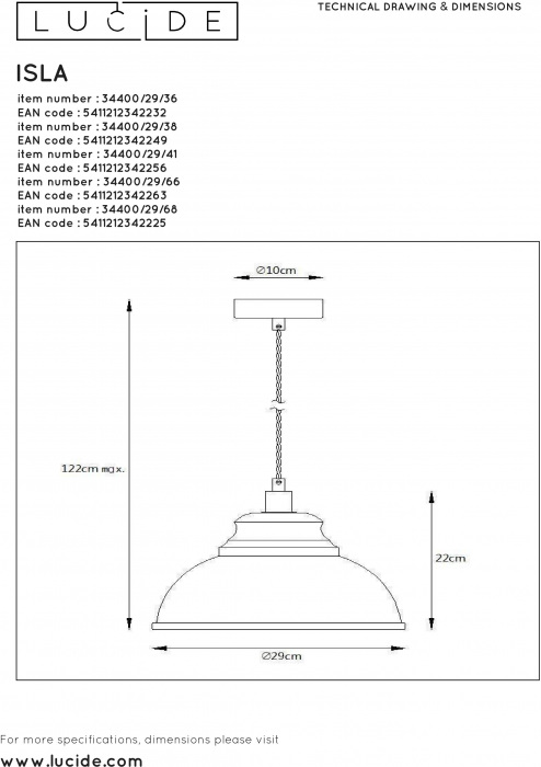 Подвесной светильник Isla 34400/29/36 это отличная модель от надежного производителя Lucide. – экономичное и безопасное решение для квартиры или частного дома, офисных учреждений и зданий. Осветительный прибор потребляет мало электроэнергии, светит ярко и не мерцает. Идеально подойдет в практически любой интерьер. Перед покупкой внимательно прочитайте: описание, фото, характеристики, отзывы покупателей и сертификаты. Модель относится к категории «Подвесные светильники». Подойдет для прихожей и детской, но также отлично будет смотреться и в других комнатах или служебных помещениях. Можно монтировать прибор освещения как на простом, так и на натяжном потолке. Подходит для комнат, как с высокими, так и с низкими потолками. В интернет-магазине «LUMARKT» можно купить по недорогой цене 8290 руб. с бесплатной доставкой по Москве.
