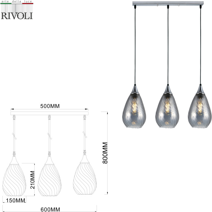 Подвесной светильник Lily 9122-203 – замечательная модель от знаменитого производителя Rivoli. – экономичное и безопасное решение для квартиры или частного дома, офисных учреждений и зданий. Осветительный прибор потребляет мало электроэнергии, светит ярко и не мерцает. Идеально подойдет в практически любой интерьер. Перед покупкой внимательно прочитайте: описание, фото, характеристики, отзывы покупателей и сертификаты. Модель относится к категории «Подвесные светильники». Подойдет для ванной и коридора, но также отлично будет смотреться и в других комнатах или служебных помещениях. Можно монтировать осветительный прибор как на обычном, так и на натяжном потолке. Подходит для помещений, как с высокими, так и с низкими потолками. В интернет-магазине «LUMARKT» продается по недорогой цене 6225 руб. с бесплатной доставкой по Москве.