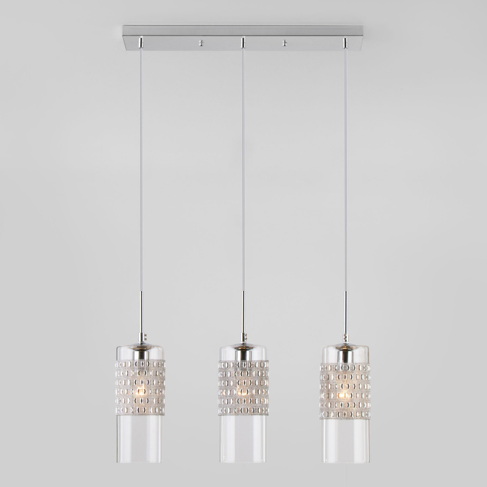 Подвесной светильник Pilar 50148/3 хром – элегантная модель от знаменитого бренда Eurosvet.  – экономичное и безопасное решение для квартиры или частного дома, офисных учреждений и зданий. Прибор освещения потребляет мало электроэнергии, светит ярко и не мерцает. Идеально подойдет в практически любой интерьер. Перед покупкой  внимательно прочитайте: описание, фото, характеристики, отзывы покупателей и сертификаты. Модель относится к категории «Подвесные светильники». Подойдет для гостиной и детской, но также отлично будет смотреться и в других комнатах или служебных помещениях. Можно монтировать осветительный прибор как на простом, так и на натяжном потолке. Подходит для комнат, как с высокими, так и с низкими потолками. В интернет-магазине «LUMARKT»  можно купить по недорогой цене 8180 руб. с бесплатной доставкой по Москве.