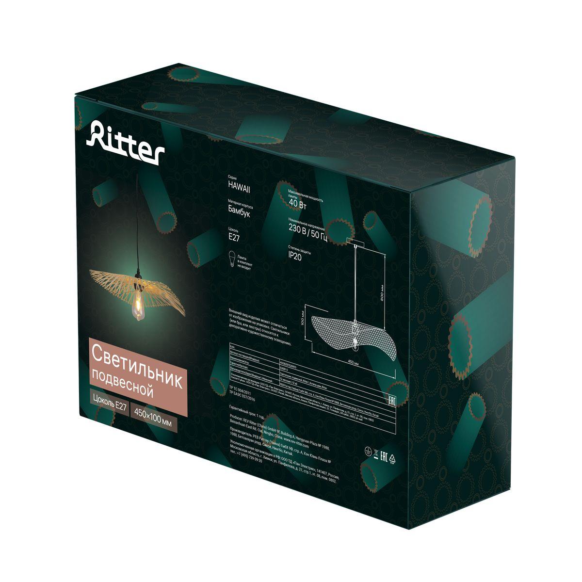 Подвесной светильник Ritter Hawaii 52681 0 это замечательная модель от знаменитого бренда Ritter. – экономичное и безопасное решение для квартиры или частного дома, офисных учреждений и зданий. Светильник потребляет мало электроэнергии, светит ярко и не мерцает. Хорошо впишется в практически любой интерьер. Перед покупкой внимательно прочитайте: описание, фото, характеристики, отзывы покупателей и сертификаты. Модель относится к категории «Подвесные светильники». Подойдет для зала и спальни, но также отлично будет смотреться и в других комнатах или служебных помещениях. Можно монтировать светильник как на обычном, так и на натяжном потолке. Подходит для комнат, как с высокими, так и с низкими потолками. В интернет-магазине «LUMARKT» продается по недорогой цене 735 руб. с бесплатной доставкой по Москве.