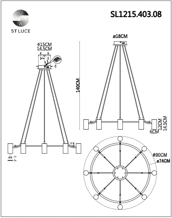 Подвесной светильник Talia SL1215.403.08 это хорош ая модель от признанного во всем мире бренда ST Luce. – экономичное и безопасное решение для квартиры или частного дома, офисных учреждений и зданий. Осветительный прибор потребляет мало электроэнергии, светит ярко и не мерцает. Идеально подойдет в практически любой интерьер. Перед покупкой внимательно прочитайте: описание, фото, характеристики, отзывы покупателей и сертификаты. Модель относится к категории «Подвесные светильники». Подойдет для прихожей и детской, но также отлично будет смотреться и в других комнатах или служебных помещениях. Можно монтировать осветительный прибор как на обычном, так и на натяжном потолке. Подходит для комнат, как с высокими, так и с низкими потолками. В интернет-магазине «LUMARKT» продается по низкой цене 21048 руб. с бесплатной доставкой по Москве.