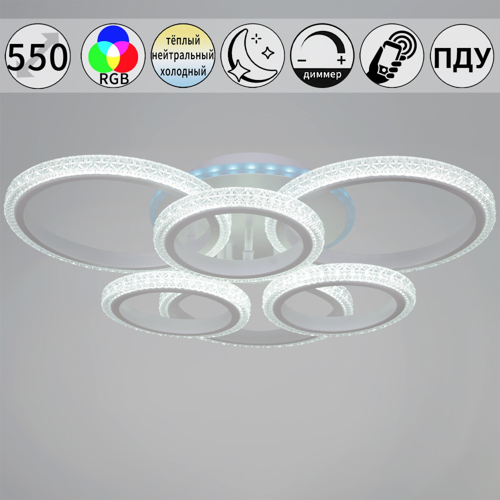 Потолочная люстра 06333-0.3-3+3A WH (RGB) – элегантная модель от зарекомендовавшего себя бренда Reluce. – экономичное и безопасное решение для квартиры или частного дома, офисных учреждений и зданий. Светильник потребляет мало электроэнергии, светит ярко и не мерцает. Прекрасно подойдет в практически любой интерьер. Перед покупкой досконально прочитайте: описание, фото, характеристики, отзывы покупателей и сертификаты. Модель относится к категории «Люстры на штанге». Подойдет для зала и детской, но также отлично будет смотреться и в других комнатах или служебных помещениях. Можно устанавливать прибор освещения как на простом, так и на натяжном потолке. Подходит для комнат, как с высокими, так и с низкими потолками. В интернет-магазине «LUMARKT» можно купить по низкой цене 8700 руб. с бесплатной доставкой по Москве.