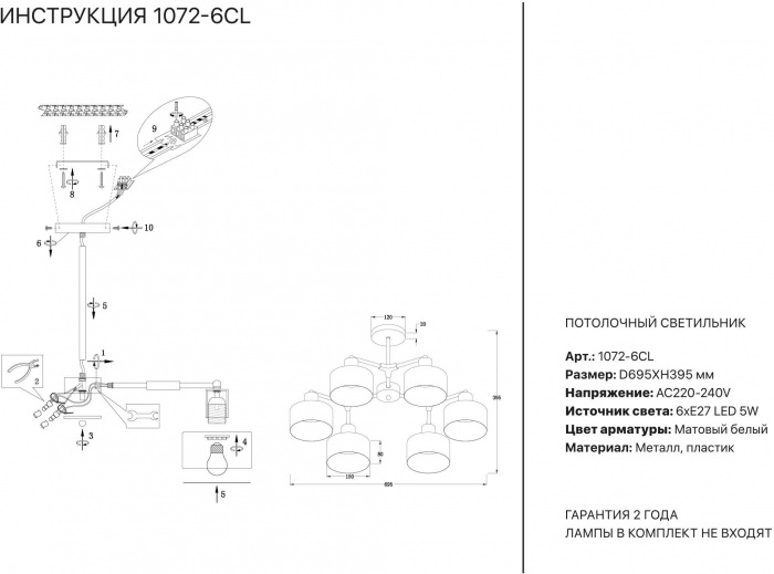 Потолочная люстра 1072 1072-6CL – замечательная модель от знаменитого бренда Simple Story. – экономичное и безопасное решение для квартиры или частного дома, офисных учреждений и зданий. Прибор освещения потребляет мало электроэнергии, светит ярко и не мерцает. Идеально подойдет в практически любой интерьер. Перед покупкой досконально изучите: описание, фото, характеристики, отзывы покупателей и сертификаты. Модель относится к категории «Люстры на штанге». Подойдет для прихожей и детской, но также отлично будет смотреться и в других комнатах или служебных помещениях. Можно монтировать прибор освещения как на простом, так и на натяжном потолке. Подходит для комнат, как с высокими, так и с низкими потолками. В интернет-магазине «LUMARKT» можно купить по недорогой цене 15876 руб. с бесплатной доставкой по Москве.