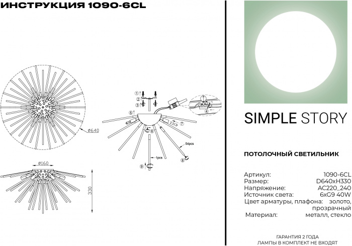 Потолочная люстра 1090 1090-6CL это великолепная модель от надежного производителя Simple Story. – экономичное и безопасное решение для квартиры или частного дома, офисных учреждений и зданий. Осветительный прибор потребляет мало электроэнергии, светит ярко и не мерцает. Идеально впишется в практически любой интерьер. Перед покупкой внимательно изучите: описание, фото, характеристики, отзывы покупателей и сертификаты. Модель относится к категории «Потолочные люстры». Подойдет для ванной и коридора, но также отлично будет смотреться и в других комнатах или служебных помещениях. Можно устанавливать светильник как на обычном, так и на натяжном потолке. Подходит для помещений, как с высокими, так и с низкими потолками. В интернет-магазине «LUMARKT» продается по низкой цене 22894 руб. с бесплатной доставкой по Москве.