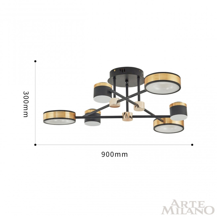 Потолочная люстра 271040/6 BK/GD – популярная модель от знаменитого бренда Arte Milano. – экономичное и безопасное решение для квартиры или частного дома, офисных учреждений и зданий. Светильник потребляет мало электроэнергии, светит ярко и не мерцает. Идеально подойдет в практически любой интерьер. Перед покупкой внимательно изучите: описание, фото, характеристики, отзывы покупателей и сертификаты. Модель относится к категории «Люстры на штанге». Подойдет для зала и детской, но также отлично будет смотреться и в других комнатах или служебных помещениях. Можно устанавливать осветительный прибор как на простом, так и на натяжном потолке. Подходит для комнат, как с высокими, так и с низкими потолками. В интернет-магазине «LUMARKT» продается по низкой цене 14904 руб. с бесплатной доставкой по Москве.