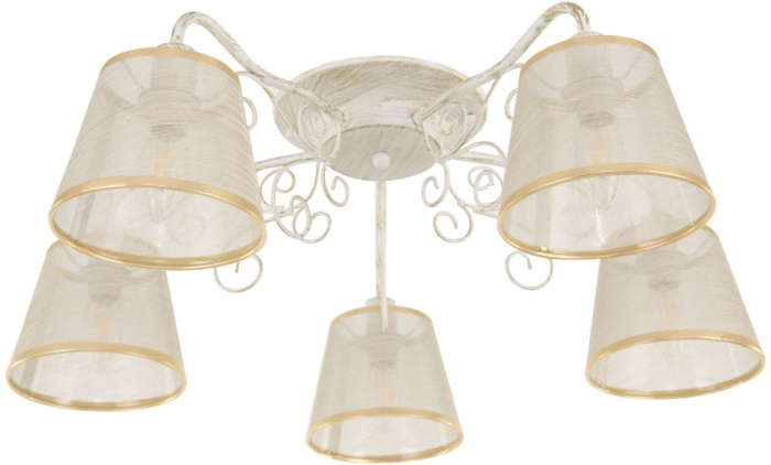 Потолочная люстра AM341120 341120/5 WT+G – отличная модель от известного производителя Arte Milano. – экономичное и безопасное решение для квартиры или частного дома, офисных учреждений и зданий. Осветительный прибор потребляет мало электроэнергии, светит ярко и не мерцает. Идеально впишется в практически любой интерьер. Перед покупкой внимательно прочитайте: описание, фото, характеристики, отзывы покупателей и сертификаты. Модель относится к категории «Потолочные люстры». Подойдет для гостиной и кухни, но также отлично будет смотреться и в других комнатах или служебных помещениях. Можно устанавливать прибор освещения как на обычном, так и на натяжном потолке. Подходит для комнат, как с высокими, так и с низкими потолками. В интернет-магазине «LUMARKT» продается по недорогой цене 6711 руб. с бесплатной доставкой по Москве.