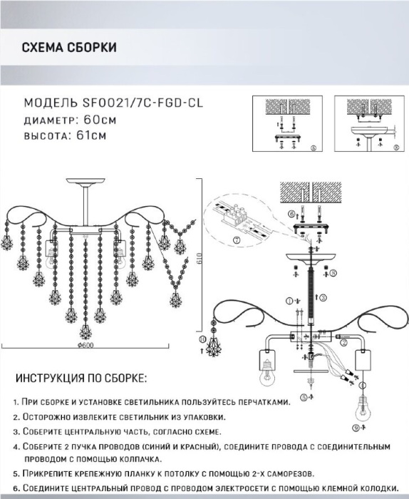 Потолочная люстра Andrenna SF0021/7C-FGD-CL это замечательная модель от знаменитого бренда Seven Fires. – экономичное и безопасное решение для квартиры или частного дома, офисных учреждений и зданий. Светильник потребляет мало электроэнергии, светит ярко и не мерцает. Хорошо впишется в практически любой интерьер. Перед покупкой досконально изучите: описание, фото, характеристики, отзывы покупателей и сертификаты. Модель относится к категории «Люстры на штанге». Подойдет для зала и детской, но также отлично будет смотреться и в других комнатах или служебных помещениях. Можно устанавливать прибор освещения как на обычном, так и на натяжном потолке. Подходит для комнат, как с высокими, так и с низкими потолками. В интернет-магазине «LUMARKT» продается по низкой цене 14920 руб. с бесплатной доставкой по Москве.