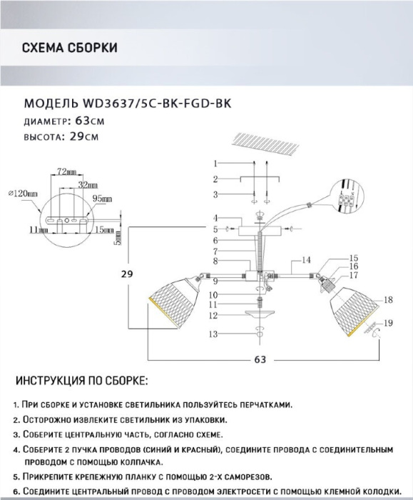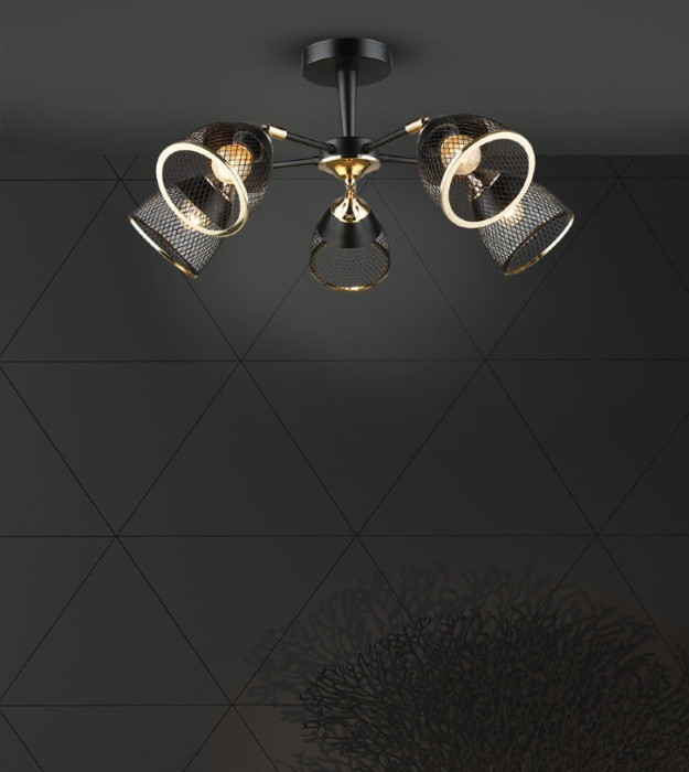 Потолочная люстра Aniko WD3637/5C-BK-FGD-BK – современная модель от знаменитого бренда Wedo Light. – экономичное и безопасное решение для квартиры или частного дома, офисных учреждений и зданий. Прибор освещения потребляет мало электроэнергии, светит ярко и не мерцает. Идеально подойдет в практически любой интерьер. Перед покупкой внимательно изучите: описание, фото, характеристики, отзывы покупателей и сертификаты. Модель относится к категории «Люстры на штанге». Подойдет для зала и детской, но также отлично будет смотреться и в других комнатах или служебных помещениях. Можно монтировать прибор освещения как на простом, так и на натяжном потолке. Подходит для помещений, как с высокими, так и с низкими потолками. В интернет-магазине «LUMARKT» можно купить по низкой цене 4000 руб. с бесплатной доставкой по Москве.