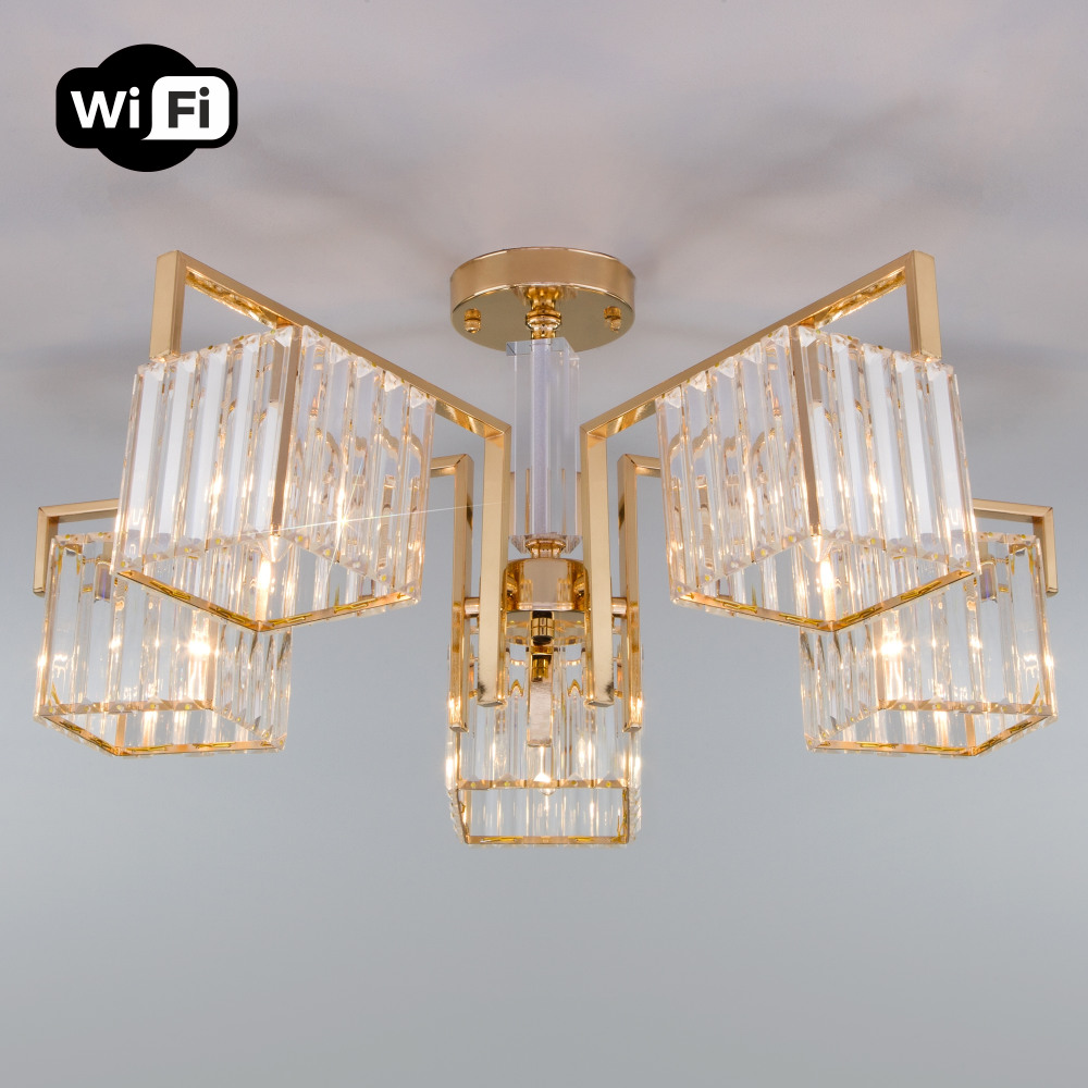 Потолочная люстра April 10126/5 золото – замечательная модель от зарекомендовавшего себя производителя Eurosvet. – экономичное и безопасное решение для квартиры или частного дома, офисных учреждений и зданий. Прибор освещения потребляет мало электроэнергии, светит ярко и не мерцает. Хорошо впишется в практически любой интерьер. Перед покупкой внимательно прочитайте: описание, фото, характеристики, отзывы покупателей и сертификаты. Модель относится к категории «Люстры на штанге». Подойдет для ванной и детской, но также отлично будет смотреться и в других комнатах или служебных помещениях. Можно устанавливать прибор освещения как на простом, так и на натяжном потолке. Подходит для комнат, как с высокими, так и с низкими потолками. В интернет-магазине «LUMARKT» можно купить по недорогой цене 6800 руб. с бесплатной доставкой по Москве.
