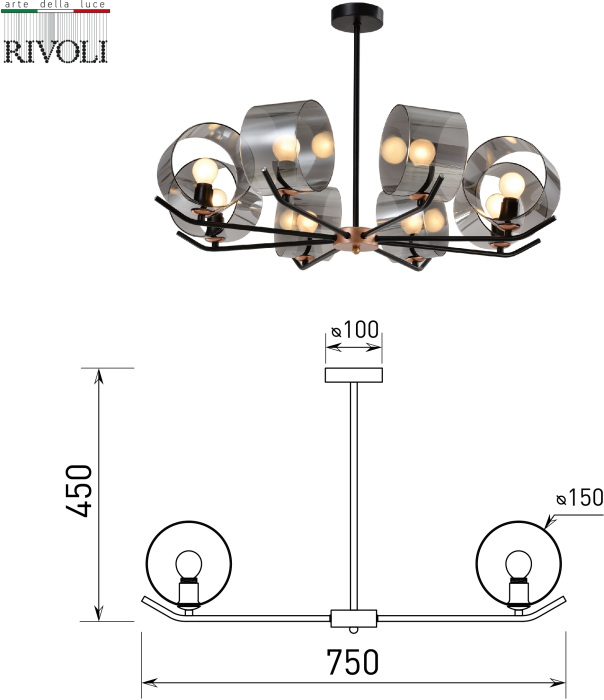 Потолочная люстра Eurydice 3133-308 это современная модель от знаменитого бренда Rivoli. – экономичное и безопасное решение для квартиры или частного дома, офисных учреждений и зданий. Осветительный прибор потребляет мало электроэнергии, светит ярко и не мерцает. Идеально подойдет в практически любой интерьер. Перед покупкой внимательно прочитайте: описание, фото, характеристики, отзывы покупателей и сертификаты. Модель относится к категории «Люстры на штанге». Подойдет для гостиной и кухни, но также отлично будет смотреться и в других комнатах или служебных помещениях. Можно крепить осветительный прибор как на простом, так и на натяжном потолке. Подходит для помещений, как с высокими, так и с низкими потолками. В интернет-магазине «LUMARKT» продается по недорогой цене 16003 руб. с бесплатной доставкой по Москве.