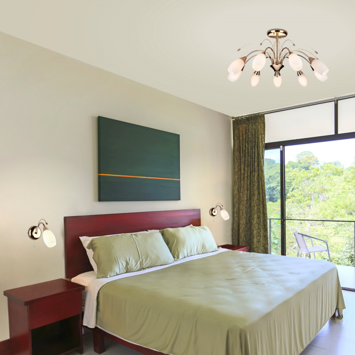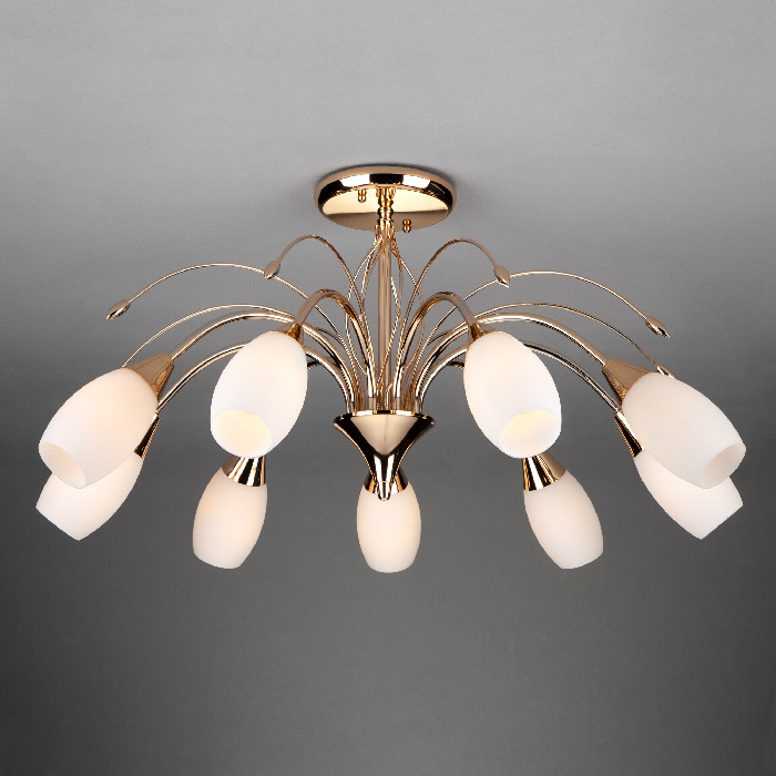 Потолочная люстра Ginevra 22080/9 золото это популярная модель от знаменитого производителя Eurosvet. – экономичное и безопасное решение для квартиры или частного дома, офисных учреждений и зданий. Светильник потребляет мало электроэнергии, светит ярко и не мерцает. Хорошо впишется в практически любой интерьер. Перед покупкой досконально прочитайте: описание, фото, характеристики, отзывы покупателей и сертификаты. Модель относится к категории «Потолочные люстры». Подойдет для прихожей и детской, но также отлично будет смотреться и в других комнатах или служебных помещениях. Можно устанавливать прибор как на простом, так и на натяжном потолке. Подходит для комнат, как с высокими, так и с низкими потолками. В интернет-магазине «LUMARKT» можно купить по недорогой цене 15200 руб. с бесплатной доставкой по Москве.
