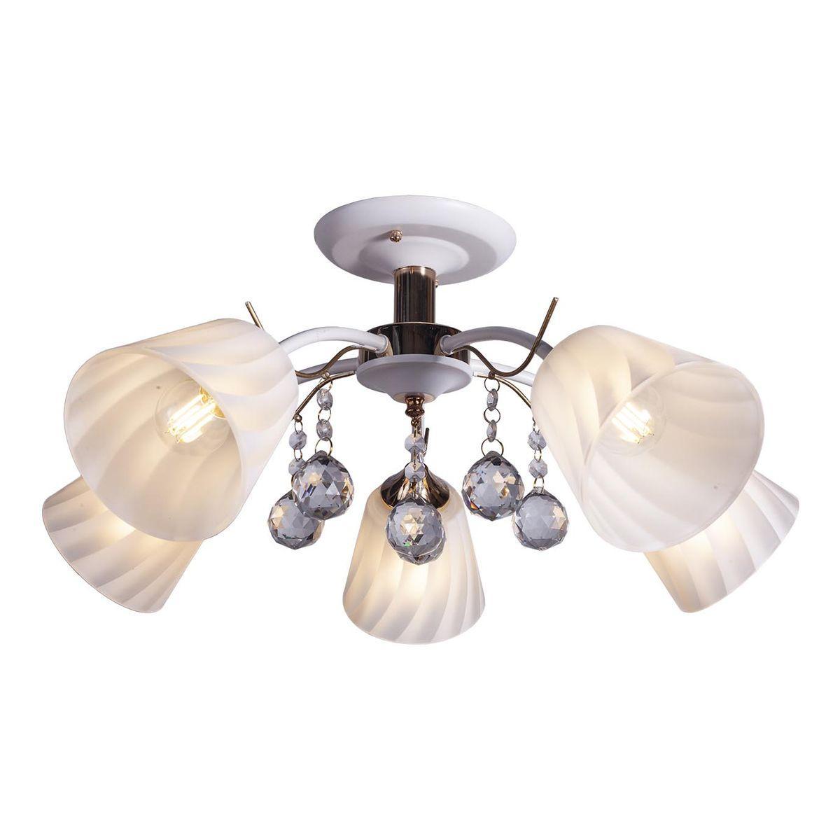 Потолочная люстра IMEX MD.0567-5-S WT+FGD это замечательная модель от известного бренда IMEX. – экономичное и безопасное решение для квартиры или частного дома, офисных учреждений и зданий. Прибор освещения потребляет мало электроэнергии, светит ярко и не мерцает. Идеально впишется в практически любой интерьер. Перед покупкой внимательно изучите: описание, фото, характеристики, отзывы покупателей и сертификаты. Модель относится к категории «Потолочные люстры». Подойдет для зала и кухни, но также отлично будет смотреться и в других комнатах или служебных помещениях. Можно устанавливать прибор освещения как на обычном, так и на натяжном потолке. Подходит для помещений, как с высокими, так и с низкими потолками. В интернет-магазине «LUMARKT» можно купить по недорогой цене 5222 руб. с бесплатной доставкой по Москве.