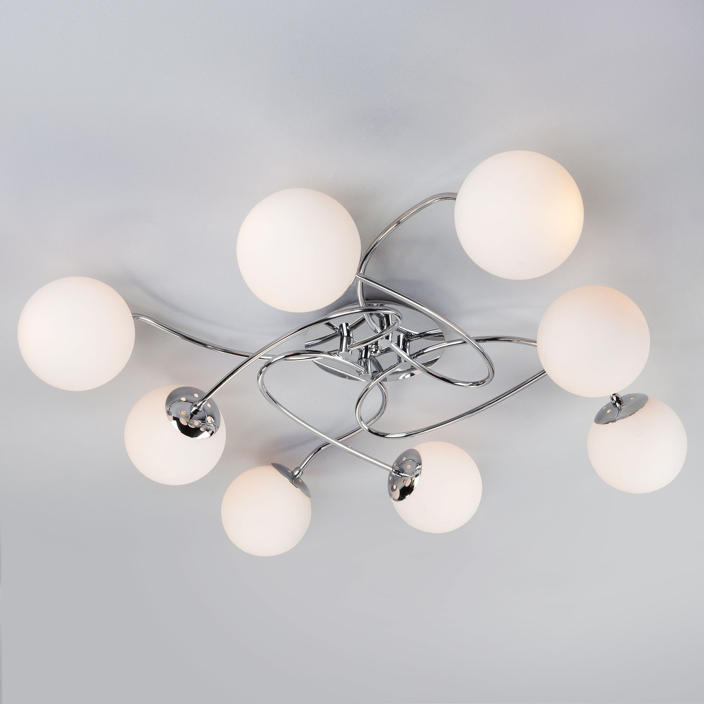 Потолочная люстра Lola 30129/8 хром – отличная модель от надежного производителя Eurosvet.  – экономичное и безопасное решение для квартиры или частного дома, офисных учреждений и зданий. Светильник потребляет мало электроэнергии, светит ярко и не мерцает. Идеально подойдет в практически любой интерьер. Перед покупкой  досконально прочитайте: описание, фото, характеристики, отзывы покупателей и сертификаты. Модель относится к категории «Потолочные люстры». Подойдет для гостиной и кухни, но также отлично будет смотреться и в других комнатах или служебных помещениях. Можно крепить прибор как на обычном, так и на натяжном потолке. Подходит для помещений, как с высокими, так и с низкими потолками. В интернет-магазине «LUMARKT»  продается по низкой цене 9040 руб. с бесплатной доставкой по Москве.