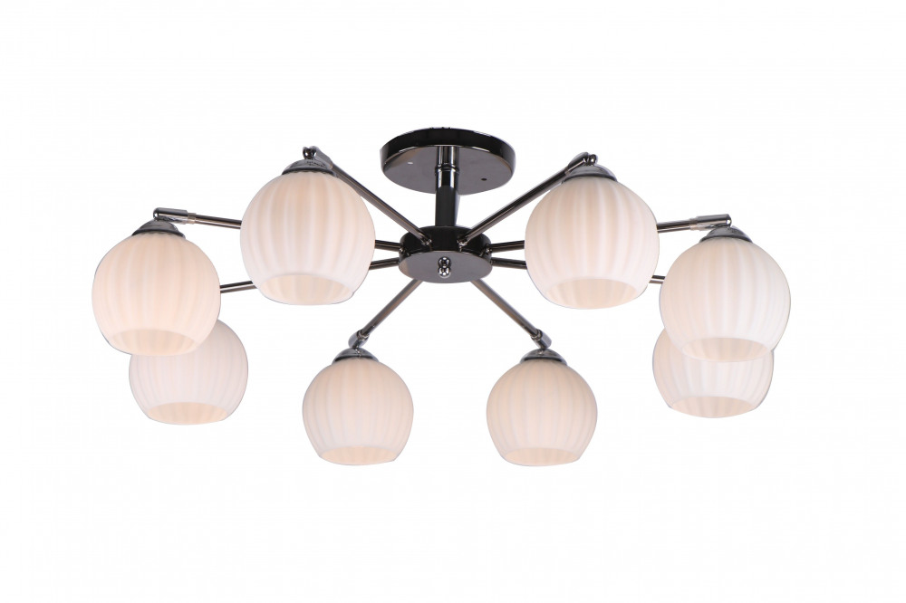 Потолочная люстра MD.0547-8-S CH – замечательная модель от знаменитого производителя IMEX. – экономичное и безопасное решение для квартиры или частного дома, офисных учреждений и зданий. Светильник потребляет мало электроэнергии, светит ярко и не мерцает. Идеально подойдет в практически любой интерьер. Перед покупкой досконально прочитайте: описание, фото, характеристики, отзывы покупателей и сертификаты. Модель относится к категории «Потолочные люстры». Подойдет для прихожей и детской, но также отлично будет смотреться и в других комнатах или служебных помещениях. Можно крепить прибор освещения как на обычном, так и на натяжном потолке. Подходит для помещений, как с высокими, так и с низкими потолками. В интернет-магазине «LUMARKT» можно купить по недорогой цене 5818 руб. с бесплатной доставкой по Москве.