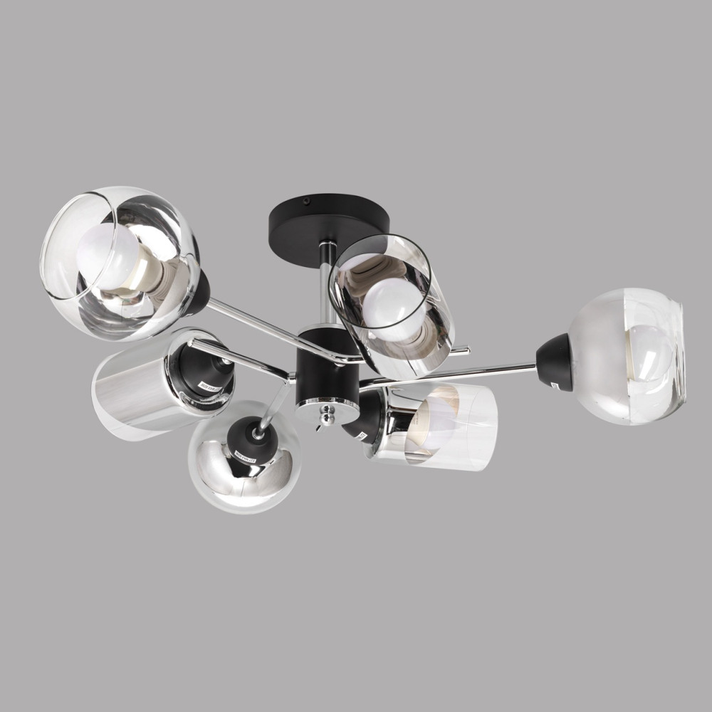 Потолочная люстра MD.8243-6-S-BK+CH – замечательная модель от знаменитого производителя IMEX. – экономичное и безопасное решение для квартиры или частного дома, офисных учреждений и зданий. Осветительный прибор потребляет мало электроэнергии, светит ярко и не мерцает. Идеально подойдет в практически любой интерьер. Перед покупкой досконально прочитайте: описание, фото, характеристики, отзывы покупателей и сертификаты. Модель относится к категории «Люстры на штанге». Подойдет для зала и коридора, но также отлично будет смотреться и в других комнатах или служебных помещениях. Можно устанавливать осветительный прибор как на обычном, так и на натяжном потолке. Подходит для комнат, как с высокими, так и с низкими потолками. В интернет-магазине «LUMARKT» можно купить по недорогой цене 4390 руб. с бесплатной доставкой по Москве.