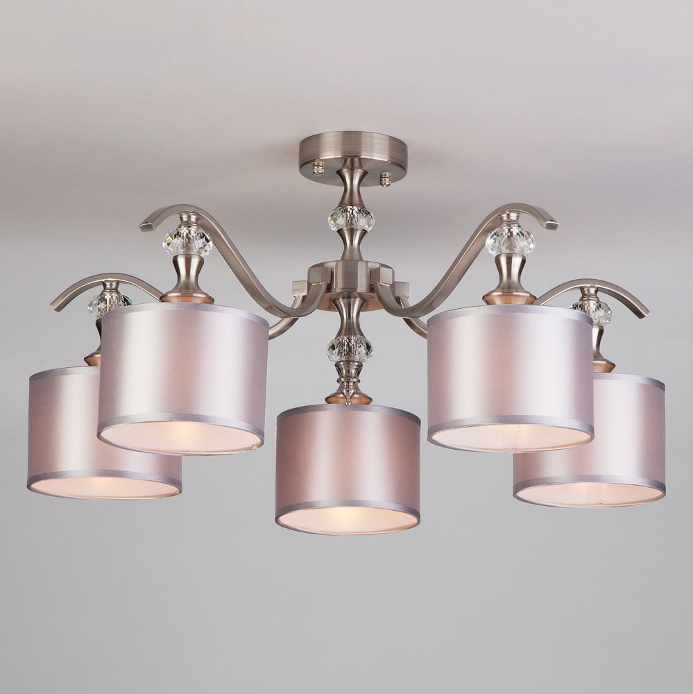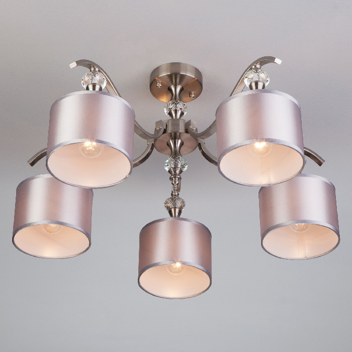 Потолочная люстра Ofelia 60070/5 сатин-никель – элегантная модель от известного бренда Eurosvet. – экономичное и безопасное решение для квартиры или частного дома, офисных учреждений и зданий. Светильник потребляет мало электроэнергии, светит ярко и не мерцает. Идеально подойдет в практически любой интерьер. Перед покупкой досконально изучите: описание, фото, характеристики, отзывы покупателей и сертификаты. Модель относится к категории «Потолочные люстры». Подойдет для ванной и спальни, но также отлично будет смотреться и в других комнатах или служебных помещениях. Можно крепить прибор освещения как на простом, так и на натяжном потолке. Подходит для помещений, как с высокими, так и с низкими потолками. В интернет-магазине «LUMARKT» продается по недорогой цене 7900 руб. с бесплатной доставкой по Москве.