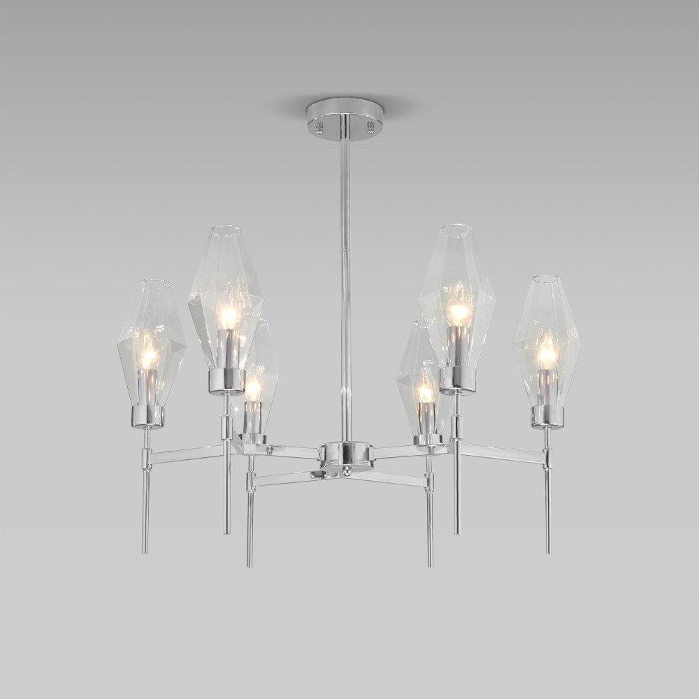 Потолочная люстра Prism 60143/6 хром – элегантная модель от признанного во всем мире производителя Eurosvet. – экономичное и безопасное решение для квартиры или частного дома, офисных учреждений и зданий. Светильник потребляет мало электроэнергии, светит ярко и не мерцает. Прекрасно подойдет в практически любой интерьер. Перед покупкой досконально изучите: описание, фото, характеристики, отзывы покупателей и сертификаты. Модель относится к категории «Люстры на штанге». Подойдет для гостиной и коридора, но также отлично будет смотреться и в других комнатах или служебных помещениях. Можно устанавливать светильник как на обычном, так и на натяжном потолке. Подходит для помещений, как с высокими, так и с низкими потолками. В интернет-магазине «LUMARKT» продается по недорогой цене 18400 руб. с бесплатной доставкой по Москве.