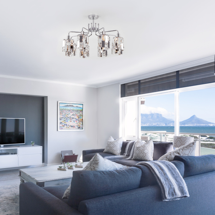 Потолочная люстра Scoppio 10101/8 хром/прозрачный хрусталь Strotskis это элегантная модель от зарекомендовавшего себя производителя Eurosvet. – экономичное и безопасное решение для квартиры или частного дома, офисных учреждений и зданий. Прибор освещения потребляет мало электроэнергии, светит ярко и не мерцает. Прекрасно подойдет в практически любой интерьер. Перед покупкой внимательно изучите: описание, фото, характеристики, отзывы покупателей и сертификаты. Модель относится к категории «Потолочные люстры». Подойдет для зала и детской, но также отлично будет смотреться и в других комнатах или служебных помещениях. Можно устанавливать прибор как на простом, так и на натяжном потолке. Подходит для помещений, как с высокими, так и с низкими потолками. В интернет-магазине «LUMARKT» продается по низкой цене 34200 руб. с бесплатной доставкой по Москве.