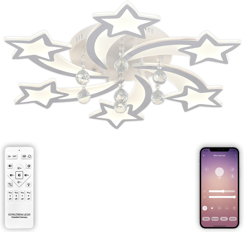 Потолочная люстра Star LED LAMPS 81239 это популярная модель от зарекомендовавшего себя бренда Natali Kovaltseva. – экономичное и безопасное решение для квартиры или частного дома, офисных учреждений и зданий. Осветительный прибор потребляет мало электроэнергии, светит ярко и не мерцает. Хорошо впишется в практически любой интерьер. Перед покупкой досконально изучите: описание, фото, характеристики, отзывы покупателей и сертификаты. Модель относится к категории «Потолочные люстры». Подойдет для ванной и спальни, но также отлично будет смотреться и в других комнатах или служебных помещениях. Можно крепить светильник как на простом, так и на натяжном потолке. Подходит для комнат, как с высокими, так и с низкими потолками. В интернет-магазине «LUMARKT» продается по низкой цене 10848 руб. с бесплатной доставкой по Москве.