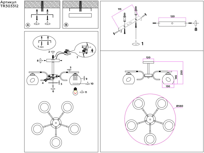 Потолочная люстра TRADITIONAL TR303312 – современная модель от известного бренда Ambrella. – экономичное и безопасное решение для квартиры или частного дома, офисных учреждений и зданий. Прибор освещения потребляет мало электроэнергии, светит ярко и не мерцает. Прекрасно подойдет в практически любой интерьер. Перед покупкой досконально прочитайте: описание, фото, характеристики, отзывы покупателей и сертификаты. Модель относится к категории «Люстры на штанге». Подойдет для гостиной и кухни, но также отлично будет смотреться и в других комнатах или служебных помещениях. Можно крепить светильник как на простом, так и на натяжном потолке. Подходит для комнат, как с высокими, так и с низкими потолками. В интернет-магазине «LUMARKT» продается по низкой цене 9620 руб. с бесплатной доставкой по Москве.