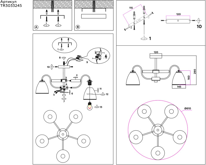 Потолочная люстра TRADITIONAL TR3033245 это элегантная модель от признанного во всем мире бренда Ambrella. – экономичное и безопасное решение для квартиры или частного дома, офисных учреждений и зданий. Светильник потребляет мало электроэнергии, светит ярко и не мерцает. Идеально впишется в практически любой интерьер. Перед покупкой досконально изучите: описание, фото, характеристики, отзывы покупателей и сертификаты. Модель относится к категории «Люстры на штанге». Подойдет для прихожей и коридора, но также отлично будет смотреться и в других комнатах или служебных помещениях. Можно устанавливать прибор освещения как на простом, так и на натяжном потолке. Подходит для помещений, как с высокими, так и с низкими потолками. В интернет-магазине «LUMARKT» можно купить по недорогой цене 5990 руб. с бесплатной доставкой по Москве.